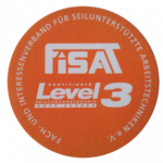 Wir sind zertifiziert und arbeiten mit geschultem Personal nach den Regelwerken der Berufsgenossenschaften und des Fach- und Interessenverbandes für seilunterstützte Arbeitstechnik e.V. (FISAT).
